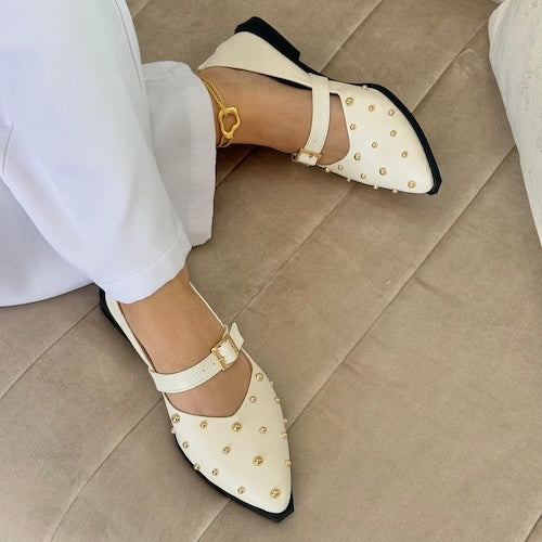 Baleta Crema con Perlas