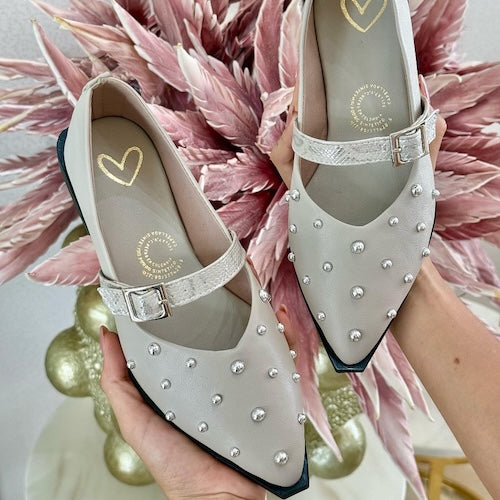 Hechos en sintético con detalles en perlas y correa ajustable.