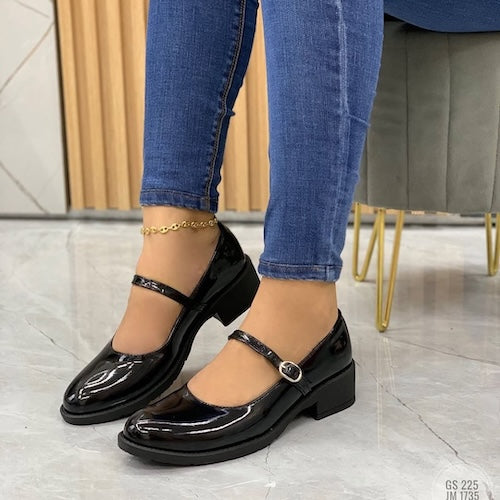 Estas baletas combinan comodidad y estilo en un diseño práctico para el día a día. Fabricadas en Colombia con material sintético tipo charol, tienen un acabado brillante que destaca. Incorporan un tacón bajo que aporta mayor soporte y un toque femenino, sin sacrificar la comodidad. Son perfectas para complementar atuendos casuales o de oficina, manteniendo siempre un look moderno y funcional.