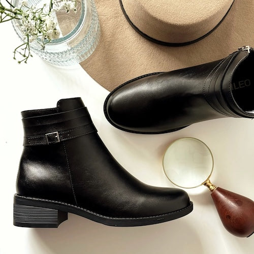 Estos botines negros son el toque perfecto de estilo clásico para tu armario. Con su diseño elegante, tacón bajo y acabado impecable, te acompañan con comodidad desde la mañana hasta la noche.