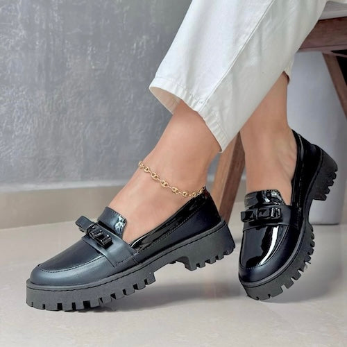 Mocasines de Mujer en Charol Sintético con Suela Tractor