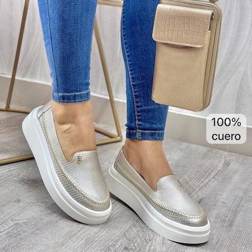 Estos tenis para mujer están diseñados para brindar comodidad sin dejar de lado el estilo. Hechos en Colombia con cuero de alta calidad, son resistentes, duraderos y perfectos para el uso diario. Su diseño versátil se adapta fácilmente a diferentes estilos, desde un look relajado hasta uno más urbano, convirtiéndolos en un básico ideal para cualquier guardarropa.